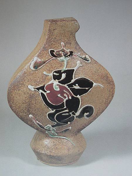 芳賀徹先生(註2)將河井寬次郎的創作區分為四個階段:一、初期的「傲古的時代」,是以中國和朝鮮的古陶瓷為表現形式。二、民藝運動的「用即是美的時代」主要以民眾的工藝美學製作生活陶器為範疇。三、二次戰後的「不定型的時代」,自由且隨性的表現。四、晚年的「無作為的時代」,創作的領域已拓展到雕塑等多方面,如此豐富的閱歷與廣泛的生活體驗,讓他對藝術的精髓體會的更為透澈。