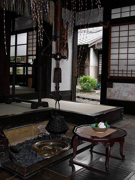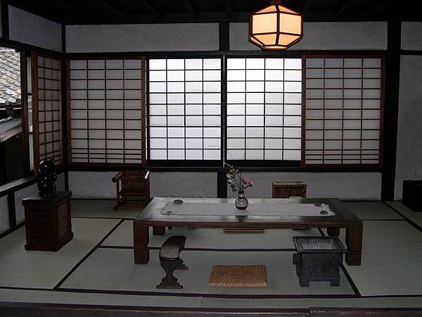 登上二樓,空氣中充滿木頭的氣味,這是時間生出來的氣味,在這樣的氛圍中,似乎才能真正感受到河井寬次郎所追求的是什麼,我打開所有的感官,完全且認真的去感受我所能感受的。靜靜的思索著在幾張褟褟米的日式小空間裡,一張矮方桌,幾張坐墊,案上的瓶花和窗外搖曳的樹影,我深深體驗了「簡」的美學,以及什麼是「人」的空間,嘗試把自己放空,將自身的經驗以及所吸收的知識拋開,那些皆是成見與想法的所在,讓自己回到最初始的狀態,用最單純的心去感受,空間、光線、材質等所散發的氣味。我想像著河井寬次郎生活在這空間中的情景,看著佈置於整個紀念館的作品,陶藝、木雕、書法之外,大至整個空間及家具,小至電燈皆由他自己設計或親手製作,足見這位陶藝家是位多才多藝且真性流露的藝術家。
