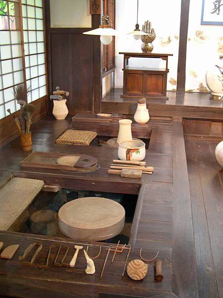 「河井寬次郎紀念館」,是由日本民藝陶藝家河井寬次郎的故居改裝而成,整棟建築也是由河井寬次郎自己所設計。在午後兩點,我到達這座位於小巷弄中的紀念館,初進館內,心情處於興奮狀態,有種急於想一窺全貌的匆忙,稍稍適應了館內的光線之後,立刻感受到了那種平靜的氣氛。寧靜的午後,沿著通往工作室的低矮迴廊,望著中庭樸實的自然景觀,在放慢的腳步中,思索著「人品不高,用墨無法」,在這樣的時空裏只是單純的想印證我的想法。對於創作者而言,作品應該就可以說明一切,但我似乎仍有那麼一點奢求,對於一位偉大的藝術家,「生活」就是他的作品,「創作」與「生活」是一體而不可分割的,這也是我此行最重要的目的。